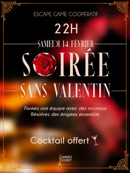 Soirée Sans-Valentin Samedi 14 Février Escape Game coopératif. Formez une équipes avec des inconnus,